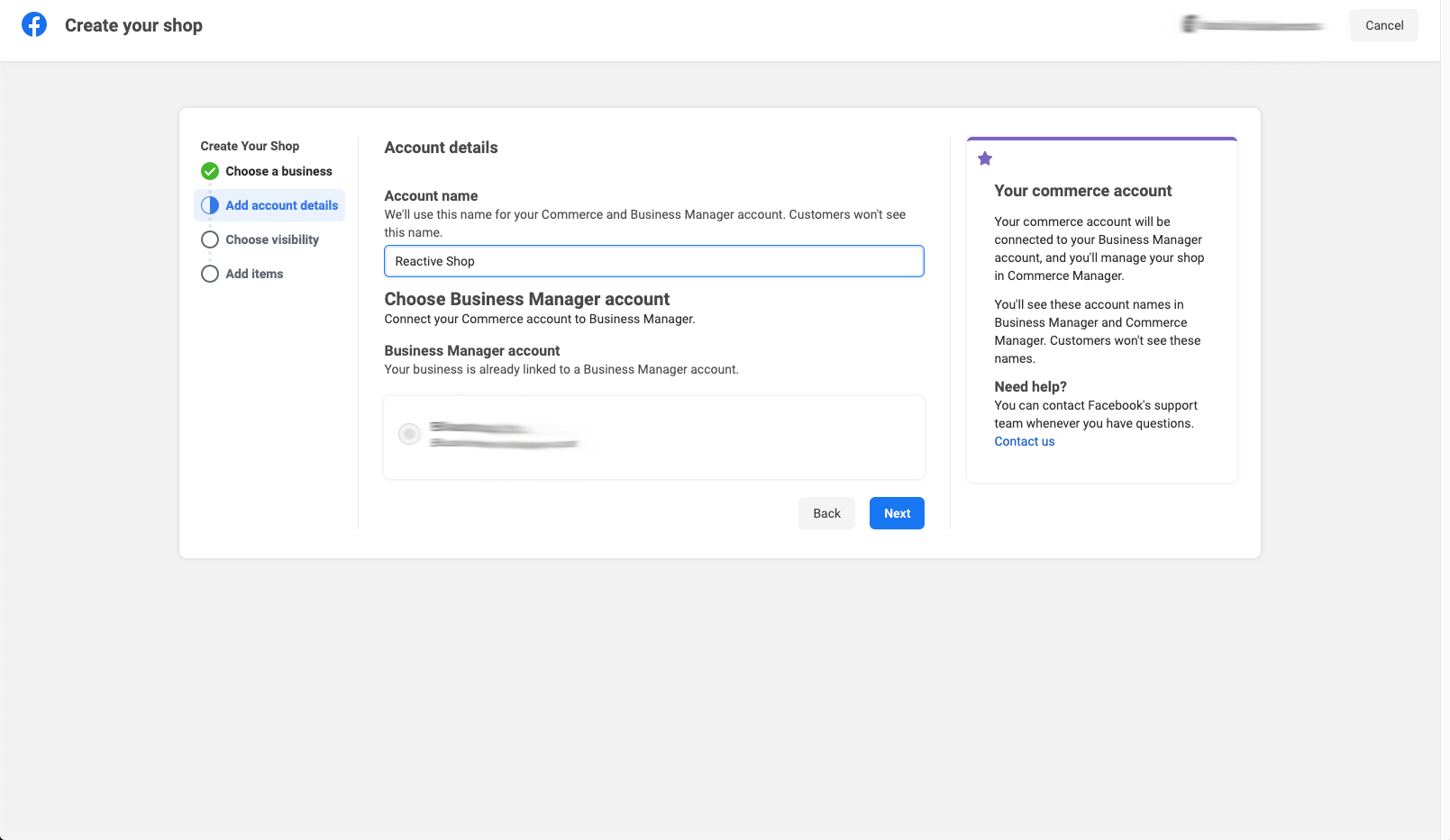 4. Ορίστε ένα όνομα για τον λογαριασμό σας. Το όνομα δεν θα είναι ορατό στους πελάτες σας. Είναι υποχρεωτικό να διαθέτετε επαγγελματικό λογαριασμό για να ξεκινήσετε την πώληση των προϊόντων σας στο Facebook.