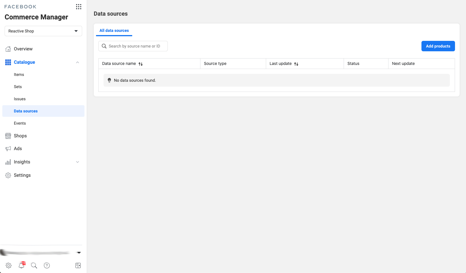 7. Μόλις τελειώσετε επιλέξτε Catalogue > Data sources από τον πίνακα διαχείρισης αριστερά. Στη συνέχεια, κάντε κλικ στο κουμπί "Add products".