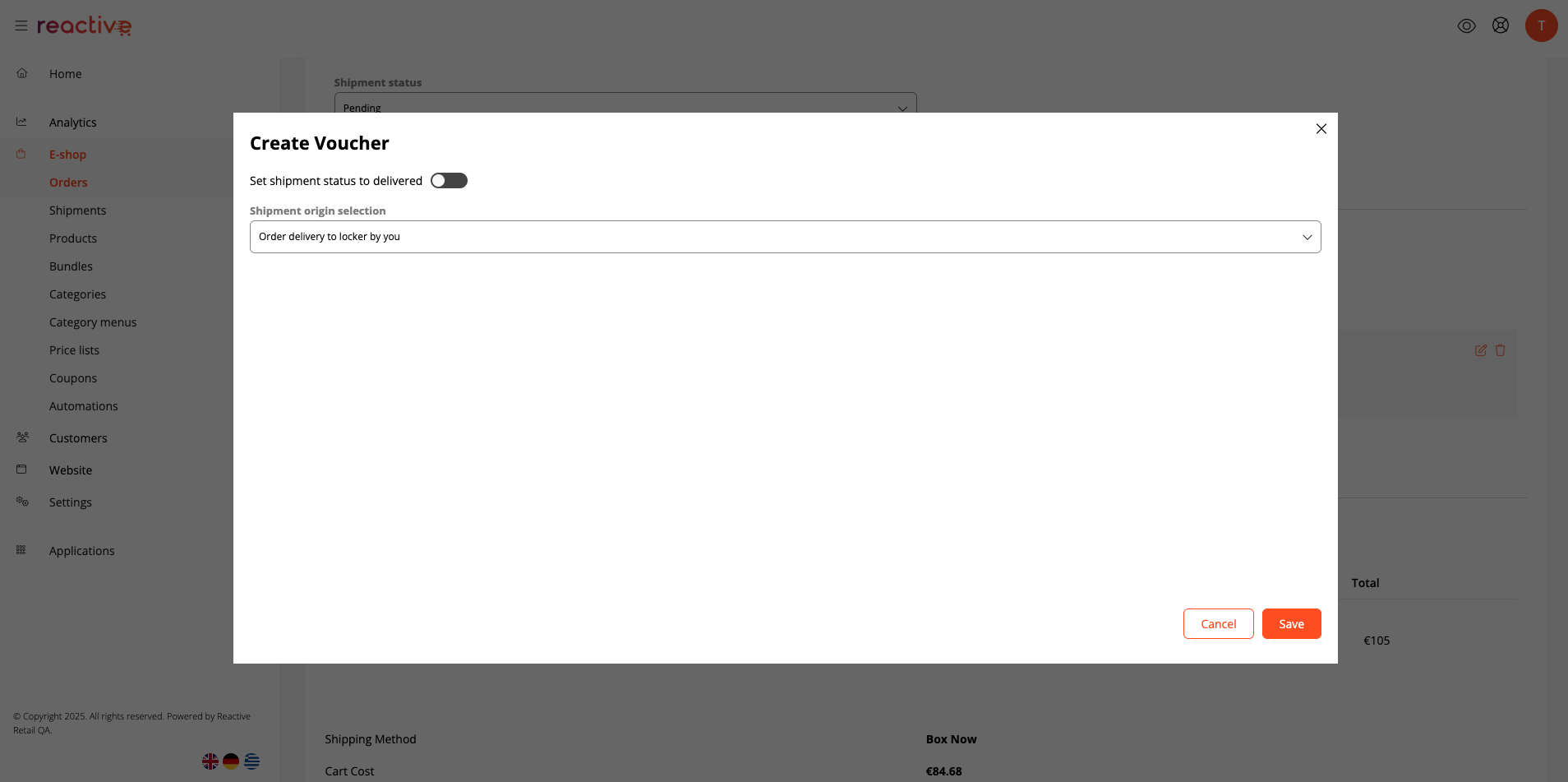 After voucher creation, the order contents and shipping method cannot be modified from the general order settings.