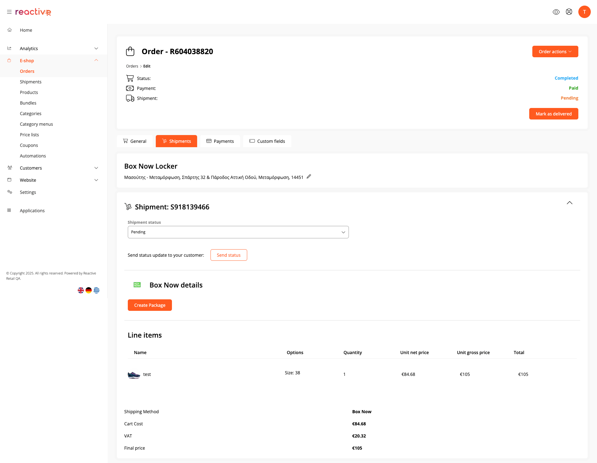 To get started, you need to be a Box Now partner and have an active account in Reactive Retail.